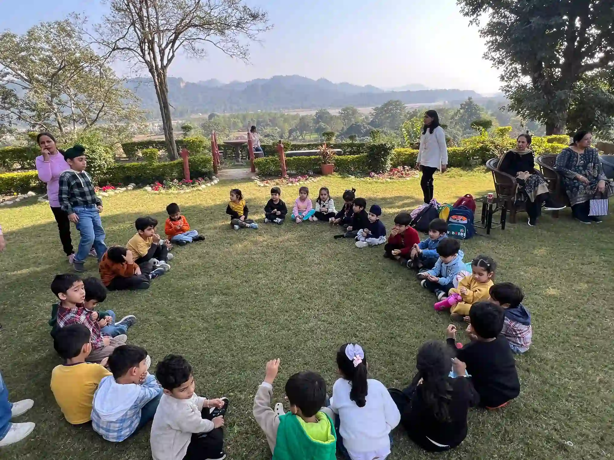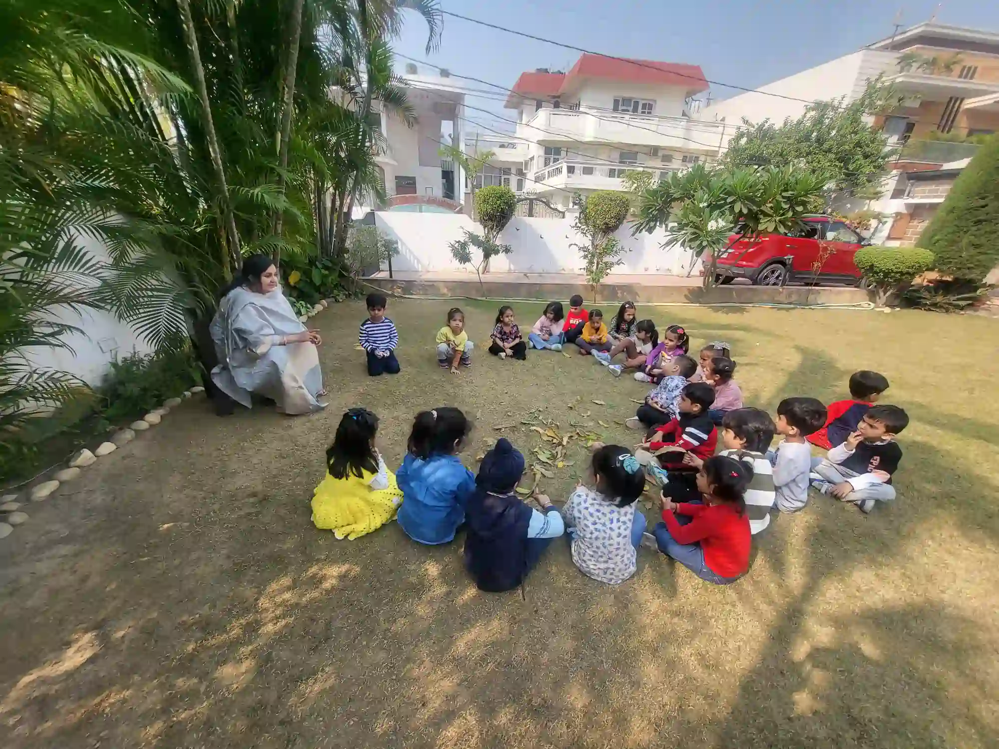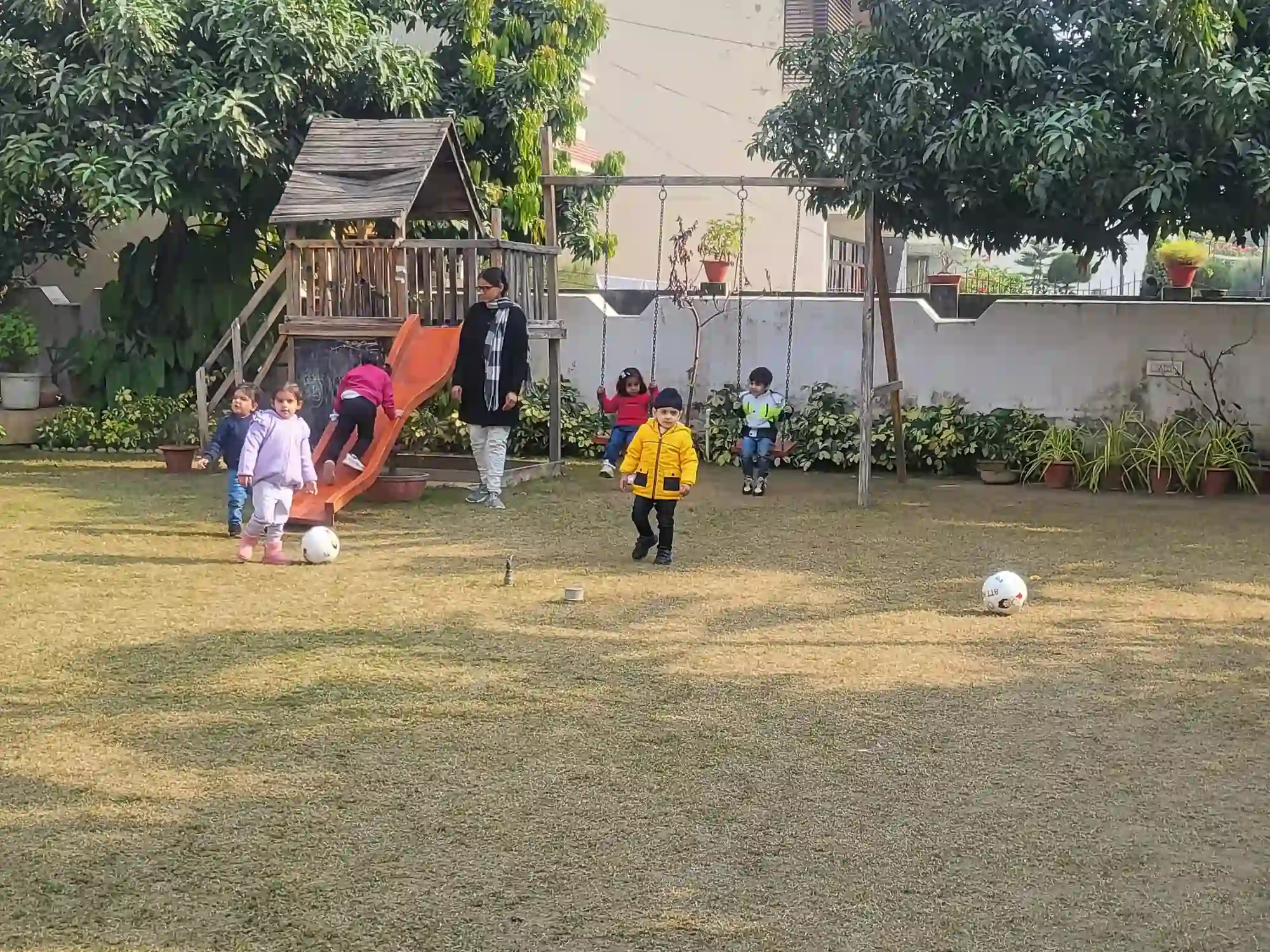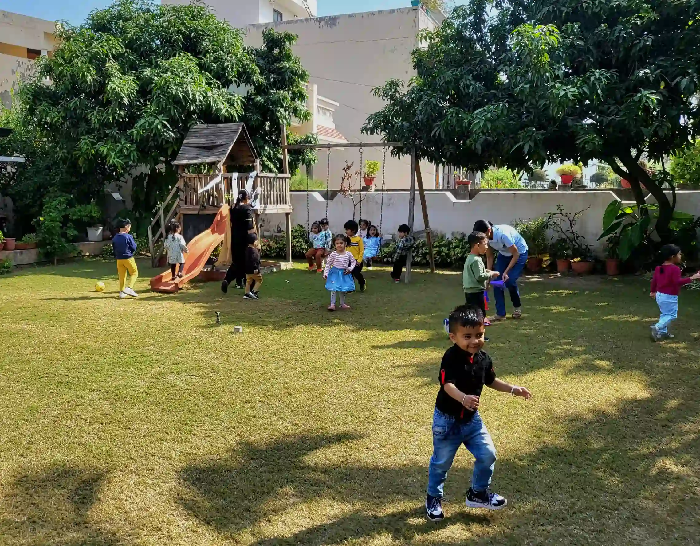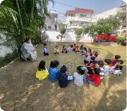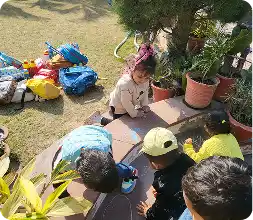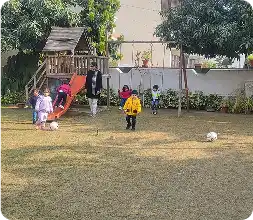 Learning blooms in nature! Our lush green space allows children to connect with the environment, explore plants, and understand the wonders of nature through interactive outdoor activities.